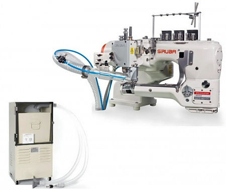 4-игольная 6-ниточная плоскошовная (распошивальная) машина цепного стежка с рукавной платформой, двухсторонней обрезкой срезов, встроенным серводвигателем с прямым приводом, электросистемой удаления обрези и автоматической функцией подъёма лапки (электромагнит)